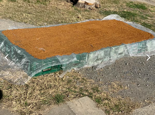 数回水洗いしてゴミを取り除き、乾いた心地よい秋風で天日干し。仕上げ用の“ふるい”でふるって、ふるい残した細かいゴミを丁寧にピンセットで取り除いてから梱包しています。