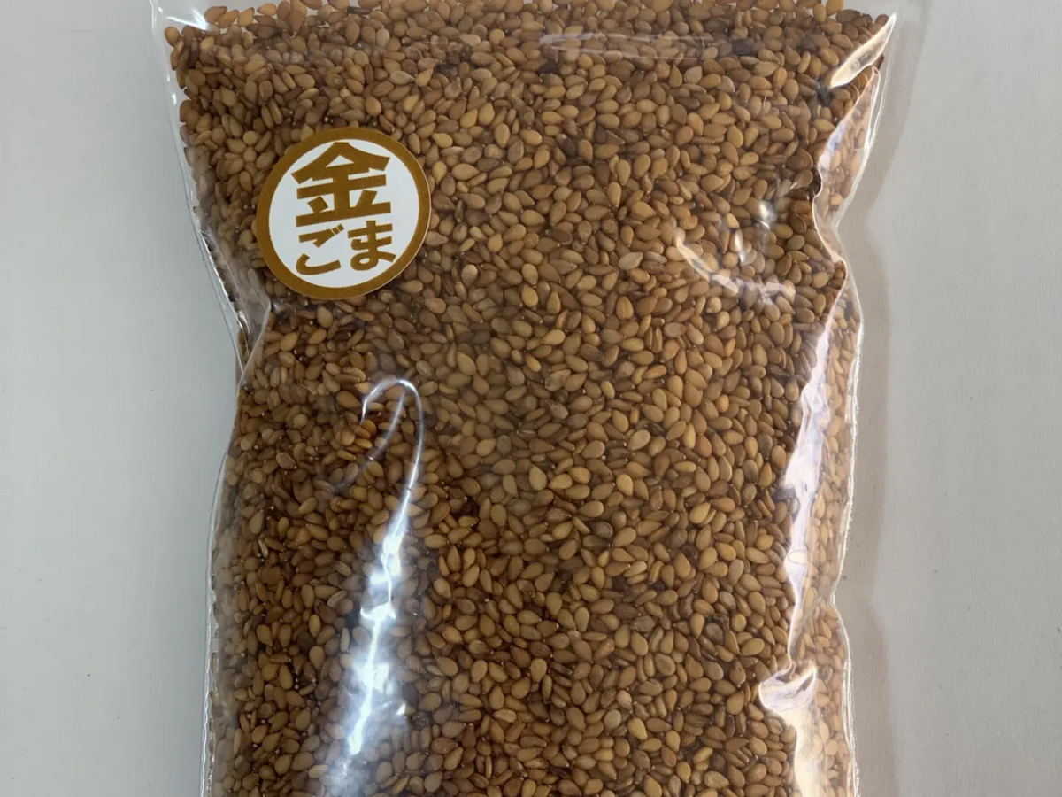 国産ごまの自給率は0.05%と言われており大変希少です。金ごまは、白ごまや黒ごまに比べて、ごま本来の旨味が強い品種です。香りが奥深く、コクとのバランスが良いのが金ごまの特徴です。是非フライパン等で軽く焙煎して、香ばしい香りとともにお召し上がりください。
