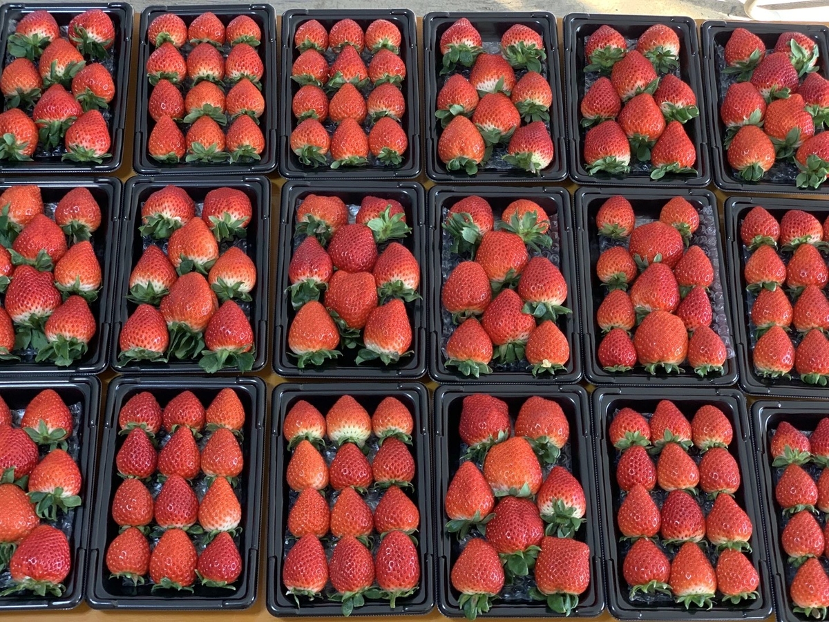 - 朝採りの厳選いちごをパック詰め&プチプチでおおって発送