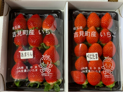埼玉県でしか生産できないオリジナル品種「あまりん」「べにたま」の2パック(各250gですので計500g) を食べ比べできる豪華(^^?)な商品となります。画像の左が「あまりん」、右が「べにたま」です。